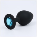 Черная анальная пробка с бирюзовым кристаллом - 8 см
