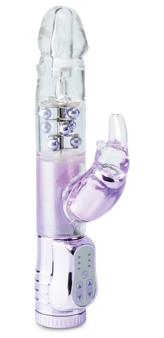 Мультискоростной вибромассажер с клиторальным стимулятором в виде зайчика. Имеет несколько скоростей вибрации стимулятора и несколько скоростей вращения ствола. Вращение осуществляется в обоих направлениях. Внутри вибрамасажера расположены шарики, усиливающие удовольствие в момент его использования. Плавная регулировка осуществляется при помощи кнопок на панели управления в основании изделия.