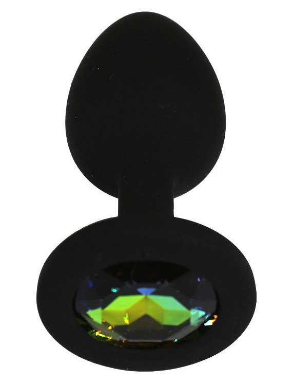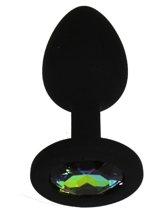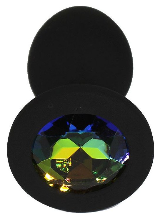 Черная анальная пробка с радужным кристаллом - 7,3 см