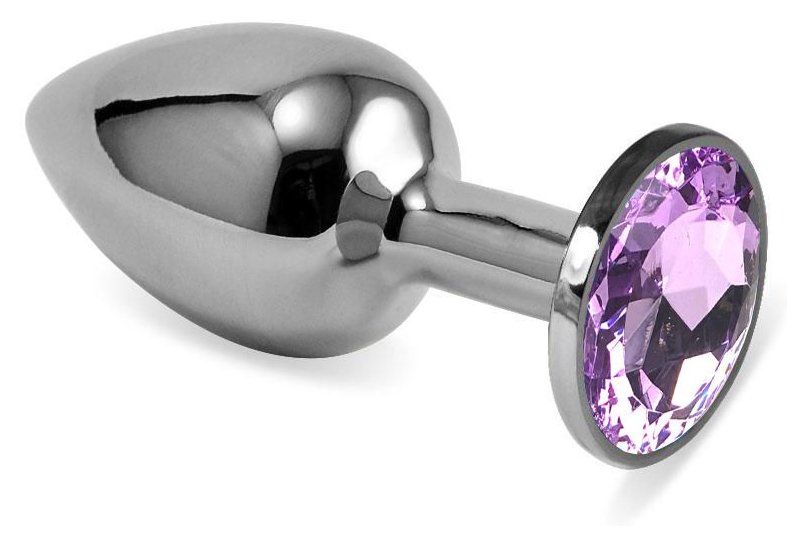 Серебристая гладкая анальная пробка с сиреневым кристаллом - 9,5 см