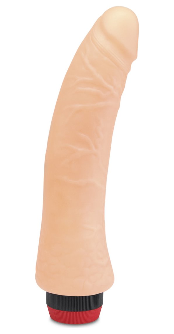 Вибратор телесного цвета, изготовленный из ПВХ. По всей длине расположены прорисованные вены для интенсивной стимуляции. Скорость вибрации переключается при помощи кнопки в основании.