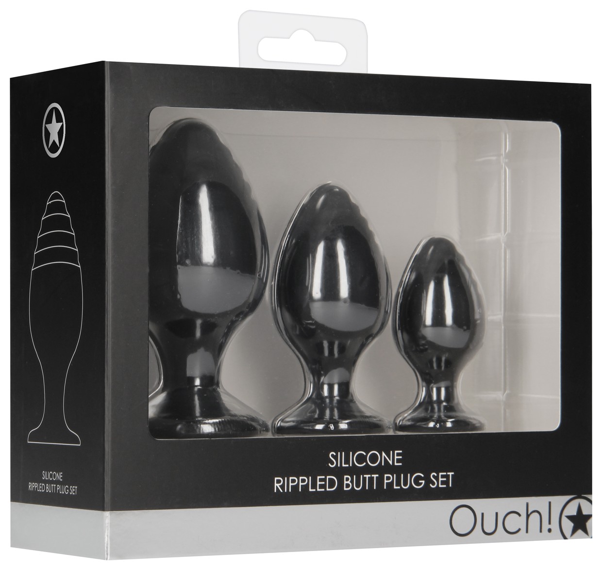 Набор из 3 черных анальных пробок Rippled Butt Plug Set