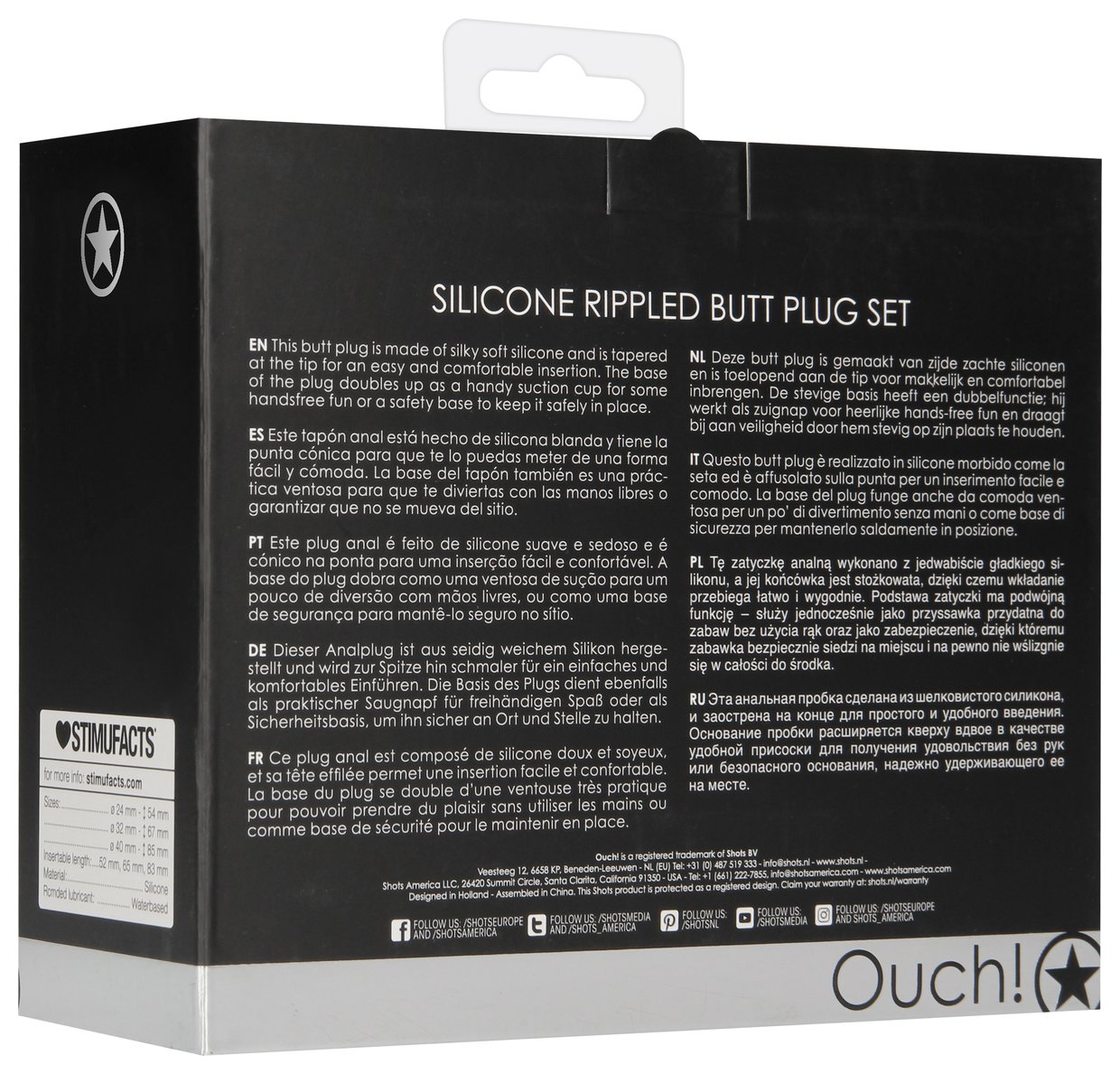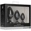 Rippled Butt Plug Set - набор из трех анальных пробок, выполнен из силикона высочайшего качества с рельефами на рабочей части и ограничителем с присоской. Пробки разных размеров для остроты ощущений. Высококачественные материалы, не содержащие фталатов, обеспечат насыщенные и гарантировано безопасные тактильные ощущения. Анальная пробка вставляется в анус после предварительной подготовки. Для комфортности введения и получения максимально приятных ощущений можно использовать смазку на водной основе. Длина большой втулки - 8,5 см., диаметр - 4 см. Длина средней втулки - 6,8 см., диаметр - 3,2 см. Длина малой втулки - 5,4 см., диаметр - 2,4 см.