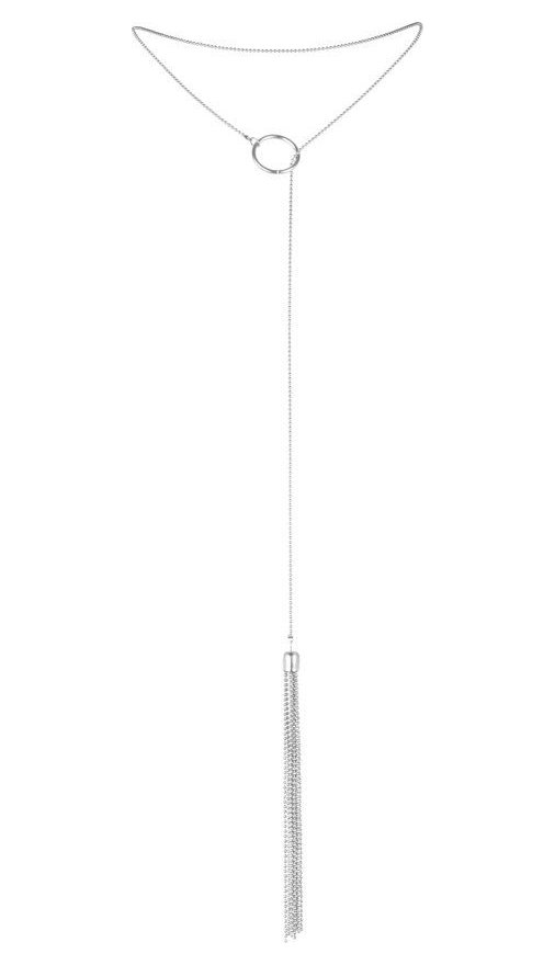 Элегантное ожерелье с небольшим хлыстиком на конце, состоящим из множества тонких цепочек. Станет прекрасным дополнением к вашим любимым нарядам, белью и обнаженной коже. Идеально сочетается с низким колье, платьем и облегающим топом. Проденьте нижнюю часть ожерелья в небольшое кольцо в верхней части, при необходимости отрегулируйте длину цепочки. Аксессуары, на которые создателей вдохновили нью-йоркские танцовщицы кабаре 1920-х годов – неординарные, чувственные и эффектные женщины. Все цепочки в коллекции регулируются с помощью специальных застежек-фиксаторов, а значит способны украсить тело каждой покупательницы. Такой аксессуар, преподнесенный в дизайнерской упаковке, станет идеальным подарком для любой женщины.