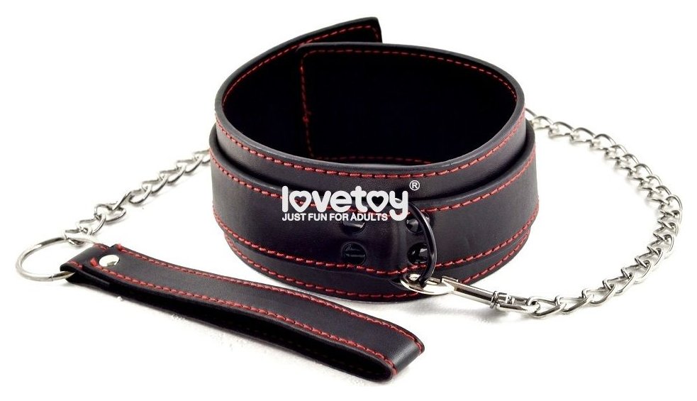 Черный ошейник с цепочкой-поводком Bondage Fetish Pleasure Collar