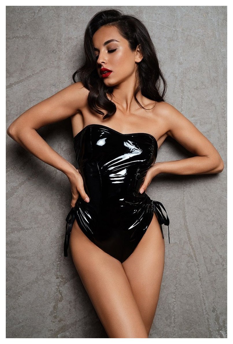 Сексуальный лакированный комбидресс на шнуровке сзади. Изделие упаковано в потрясающую подарочную упаковку, с игривым перышком внутри.