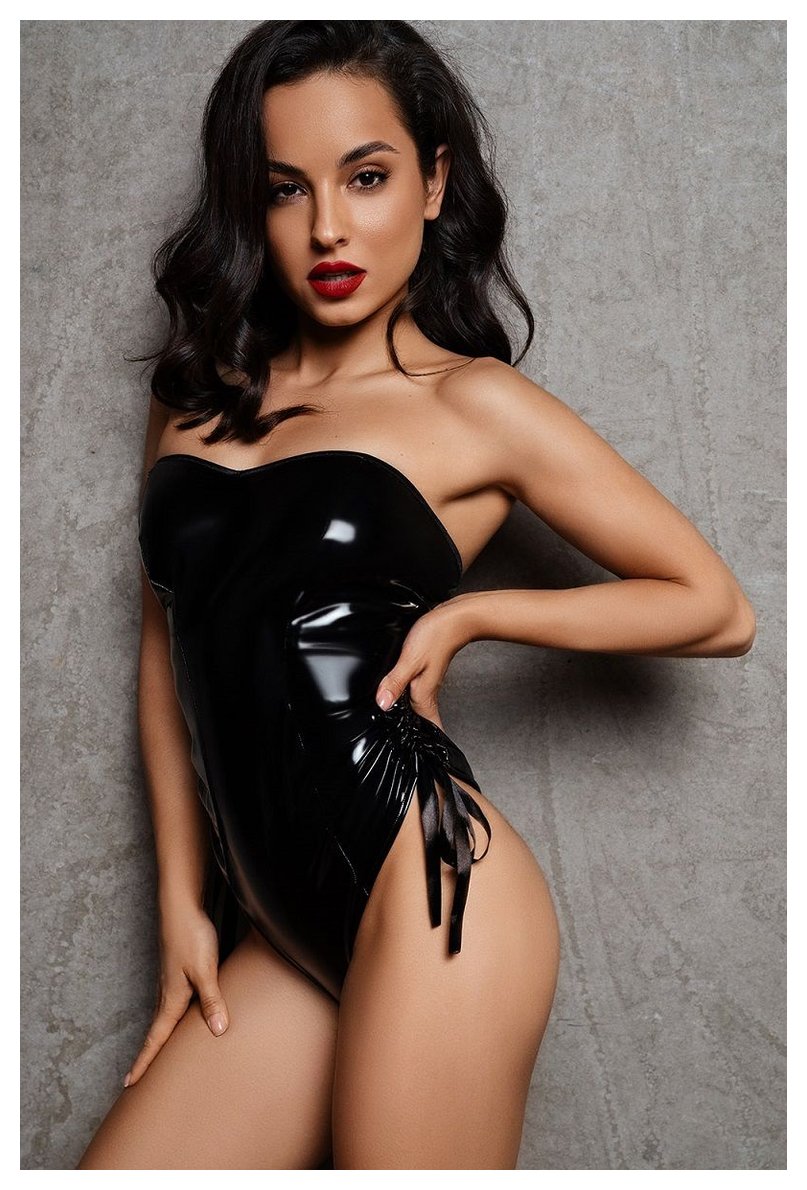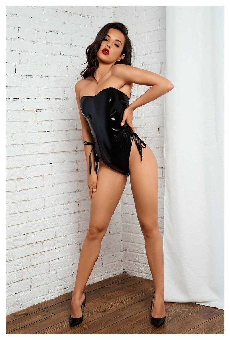 Сексуальный лакированный комбидресс на шнуровке сзади