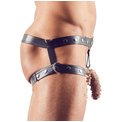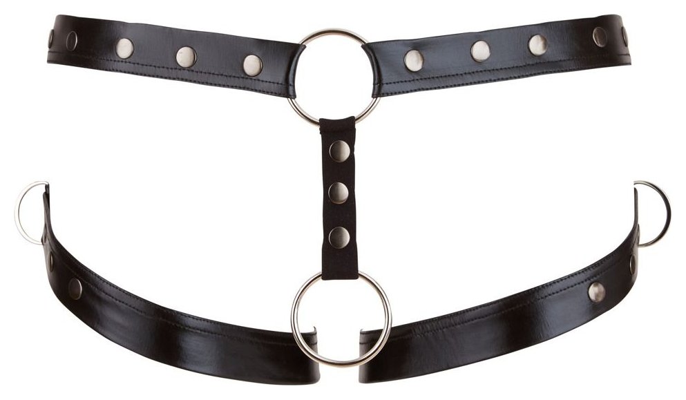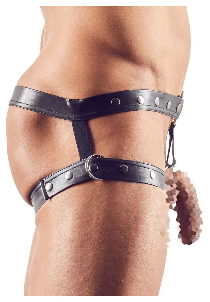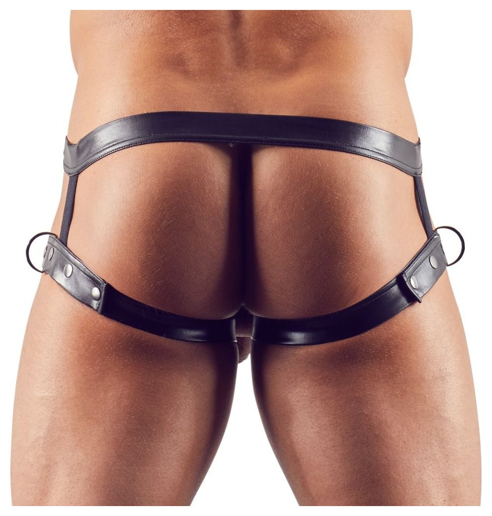 Матовые шорты-сбруя на бедра. С боковыми D-образными кольцами и кольцом под пенис на ремешке.