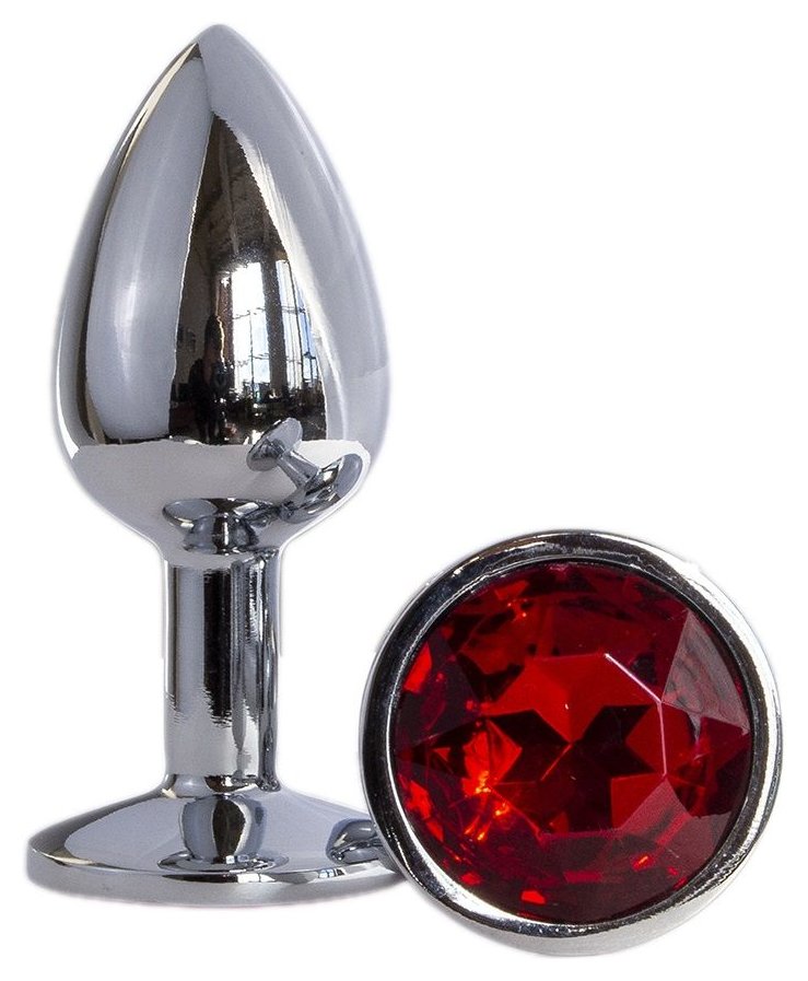 Металлическая анальная втулка с красным кристаллом - 7,2 см