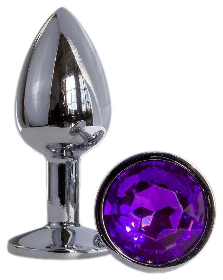 Металлическая анальная втулка с фиолетовым кристаллом - 7,2 см