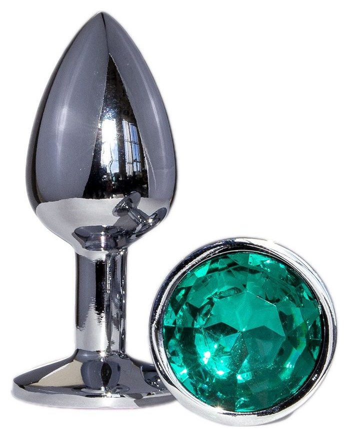 Металлическая анальная втулка с изумрудным кристаллом - 7,2 см