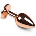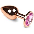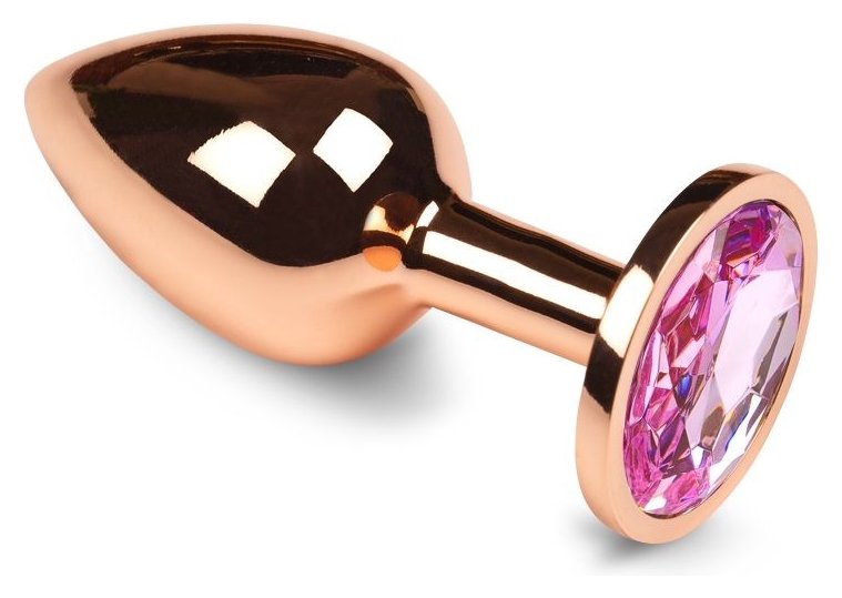 Маленькая золотистая анальная пробка с розовым кристаллом - 6 см