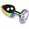 Маленькая радужная анальная пробка с прозрачным кристаллом - 6 см