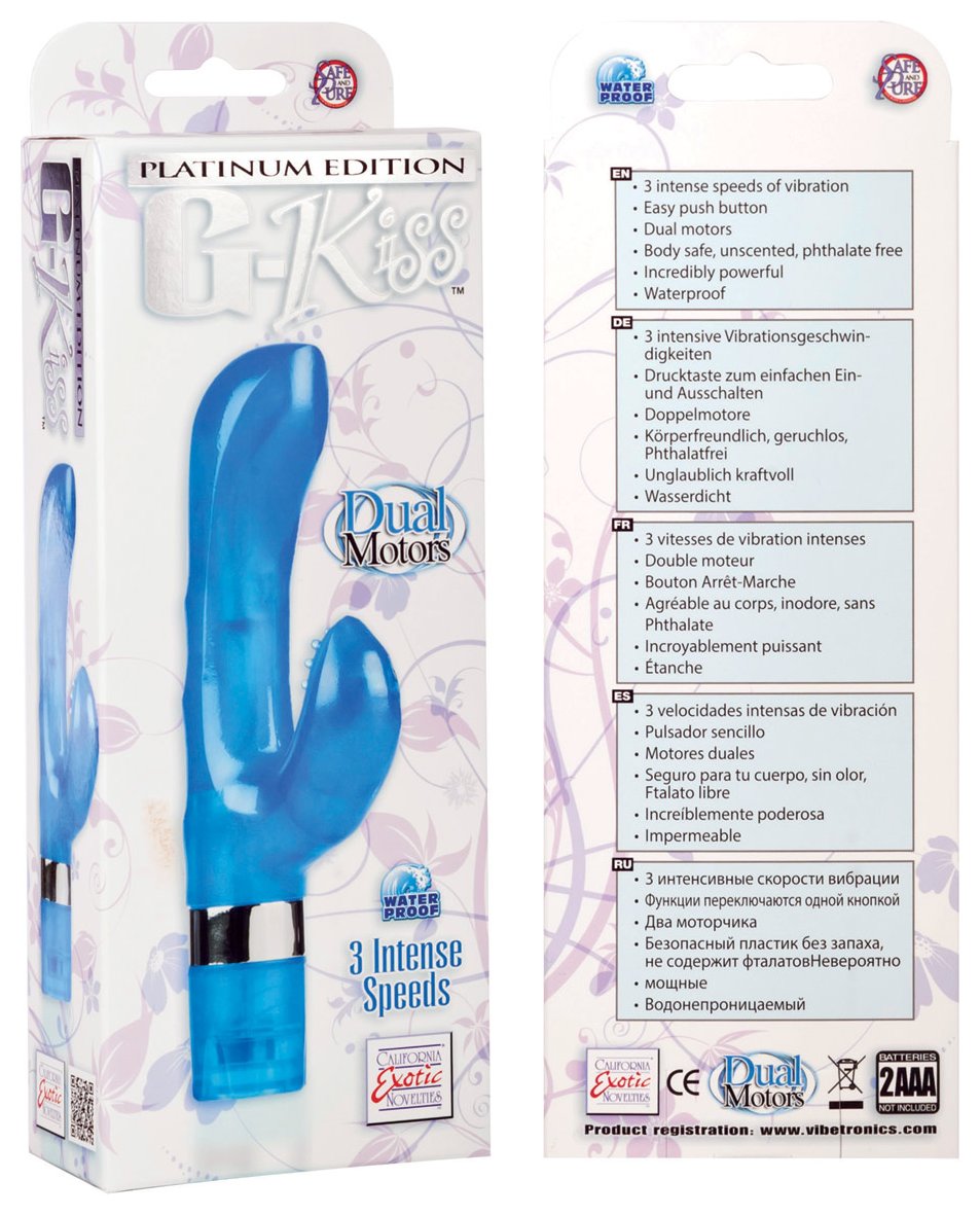 Вибратор голубого цвета PLATINUM EDITION G-KISS Глубина проникновения - 10,25 см.