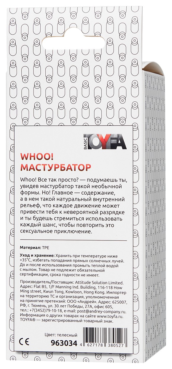 Whoo! Все так просто? - подумаешь ты, увидев мастурбатор такой необычной формы. Но! Главное - содержание, а в нем такой натуральный внутренний рельеф, что каждое движение может привести тебя к невероятной разрядке и ты будешь стремиться использовать каждый шанс, чтобы повторить это сексуальное приключение.
