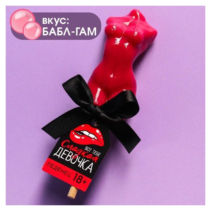 Леденец на палочке «Сладкая девочка» со вкусом бабл-гам.