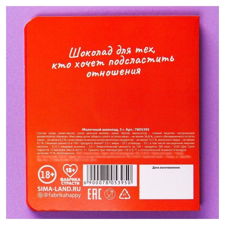 Шоколад молочный «Любовь это» в открытке.
