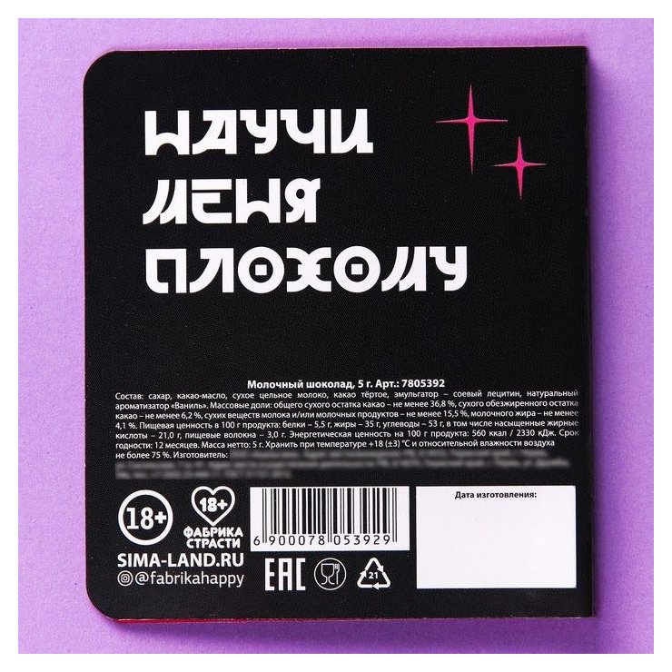 Шоколад молочный «Сделай это» в открытке - 5 гр