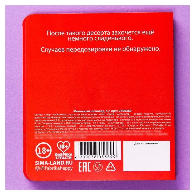 Шоколад молочный «Чтобстоял» в открытке - 5 гр
