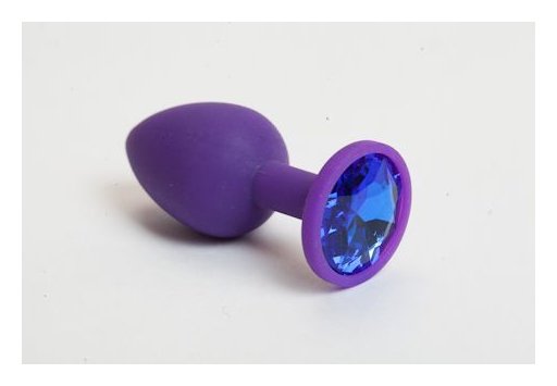 Фиолетовая анальная пробка с синим кристаллом - 8 см