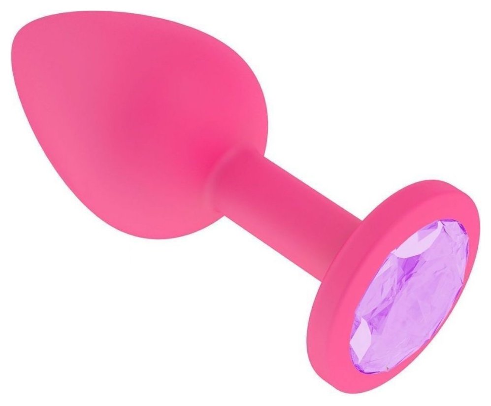 Розовая силиконовая втулка с сиреневым стразом - 7 см
