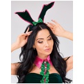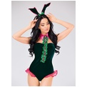 Когда рядом с мужчиной окажется такой очаровательный «зайка», тот гарантированно забудет обо всем на свете. Игривая «милашка» в бархатном боди, украшенном розовыми лентами и атласным жабо с «бриллиантовыми» пуговками, приведет в восторг кого угодно. Сочетание ярко-розового и изумрудно-зеленого цветов выглядят роскошно и притягательно. В комплекте: боди, воротник, головной убор.