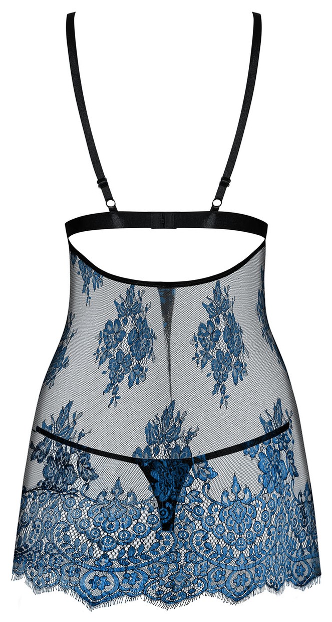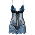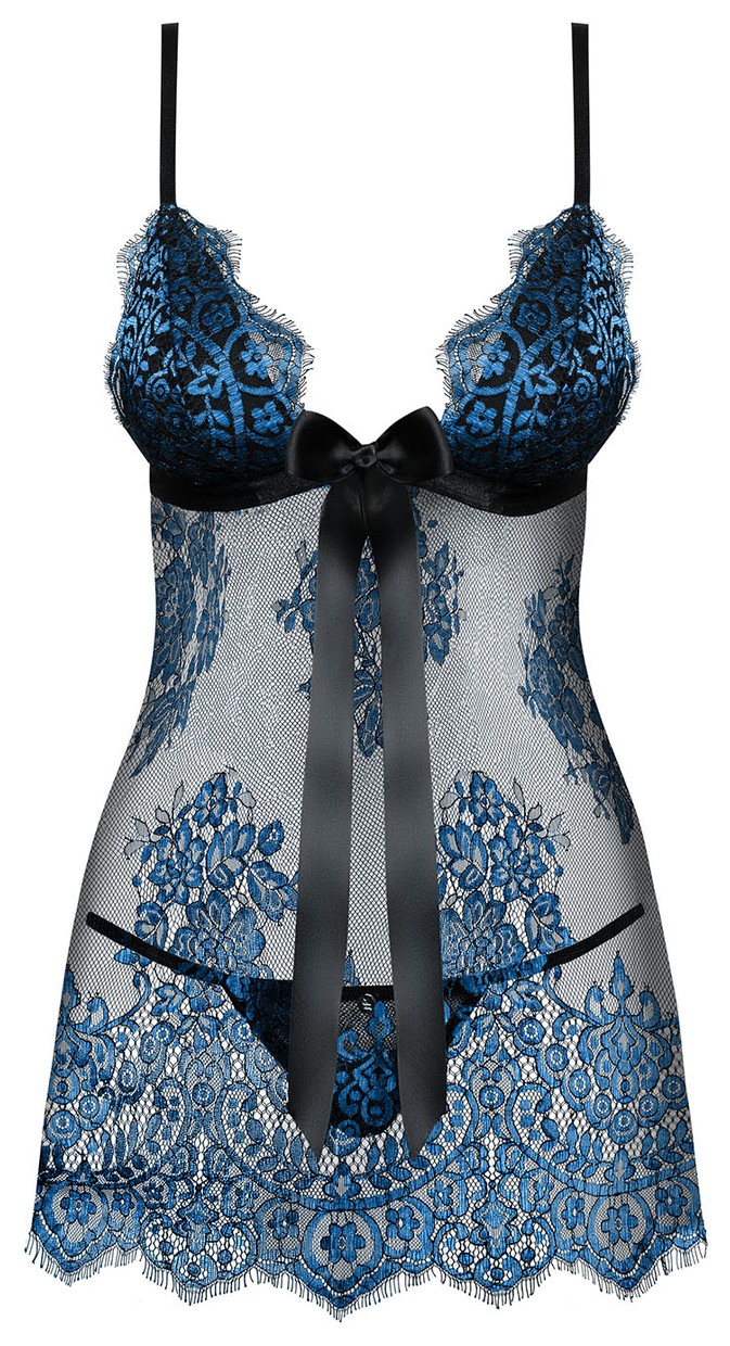 Очаровательная короткая сорочка из коллекции Yassmyne из нежного кружева. Лиф мягкий, под лифом бант из атласных лент, тонкие бретельки регулируются по длине, на спине застежка. В комплекте: сорочка и трусики-стринги.