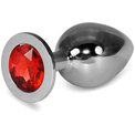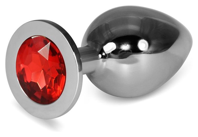 Серебристая анальная пробка с рубиновым кристаллом - 10,1 см
