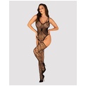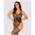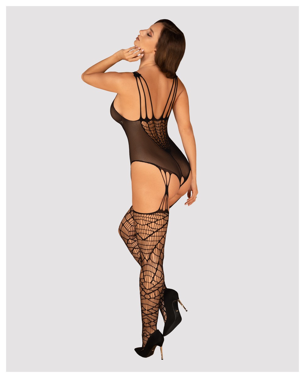 Бесшовное боди для девушки выполнено из эластичного ажурного трикотажа на узких бретельках, стилизовано под корсет с чулками на пажах.