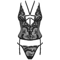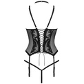 Женский эластичный корсаж из серии Alessya выполнен из прозрачной вуали и кружева с цветочным узором. Лиф на косточках, в зоне декольте тонкие бретели, вертикальные косточки спереди гарантируют идеальную посадку. Бретельки регулируются по длине, на спине корректирующая размер шнуровка, к подолу крепятся съемные пажи для чулок. В комплекте: корсаж, трусики-стринги.