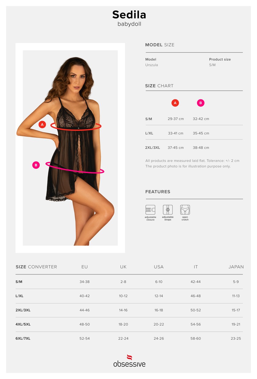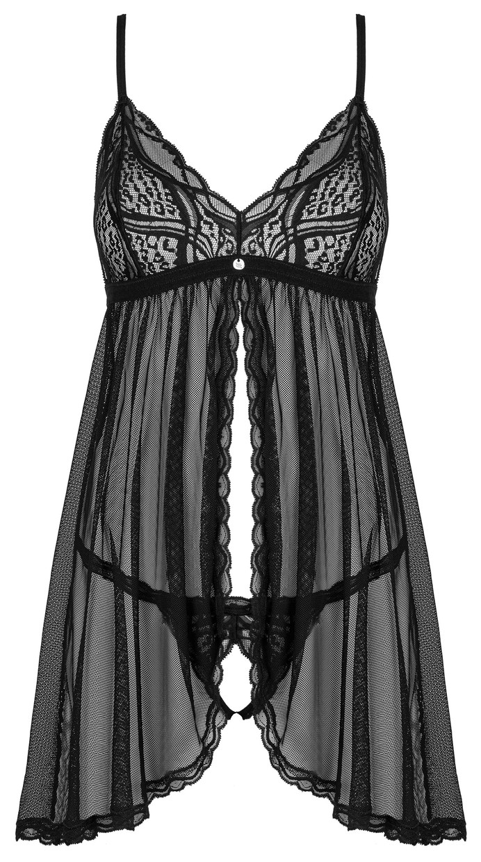 Очаровательная сорочка из коллекции Sedila. Полотно сорочки из прозрачной сетки. Лиф мягкий кружевной, без косточек, бретельки перекрещиваются на спине, регулируются по длине, на спине застёжка на удлинитель, на спинке глубокий вырез. Полочки и низ сорочки украшены кружевом. В комплекте: сорочка, трусики.