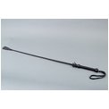 Стек состоит из гибкой основы,овитой натуральной кожей черного цвета,наконечника-хлопушки и удобной рукояти с петлей для надевания на руку (темляк).