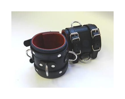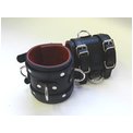 Широкие подшитые наручники с 2 ремешками, 3 D-кольцами и красной изнанкой