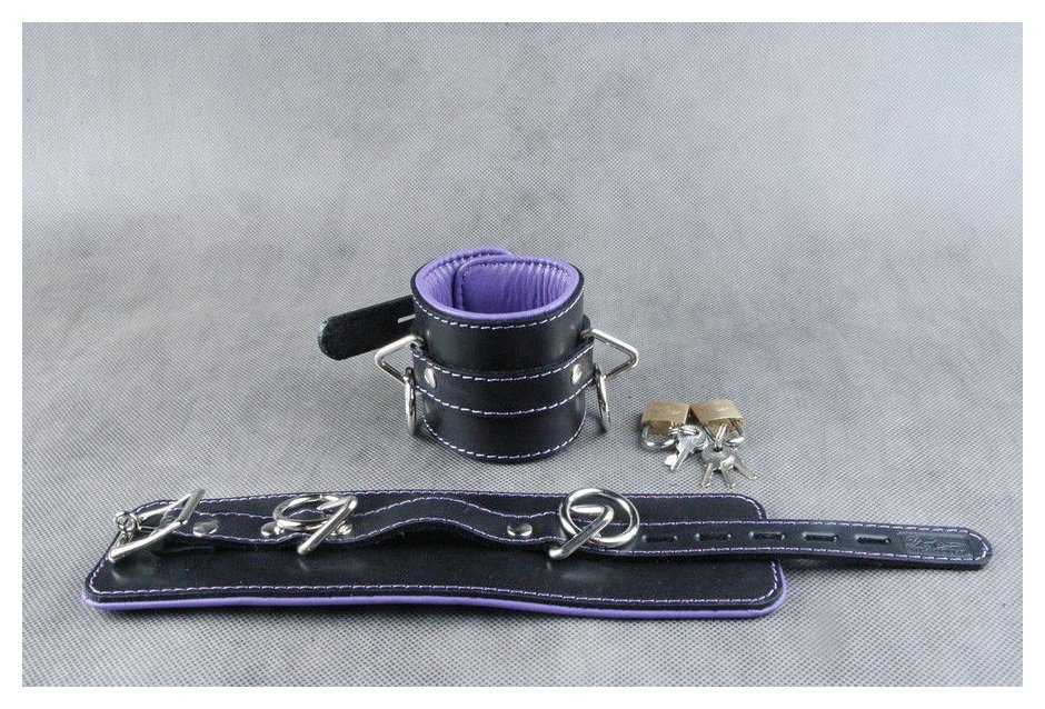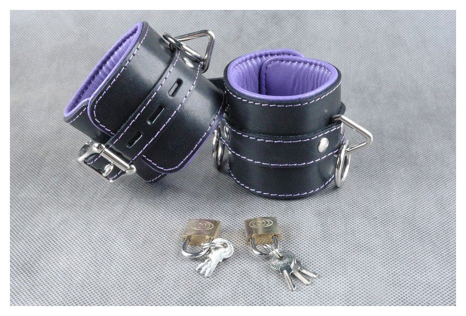 Подвёрнутые кожаные наножники с фиолетовым подкладом