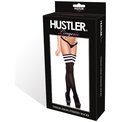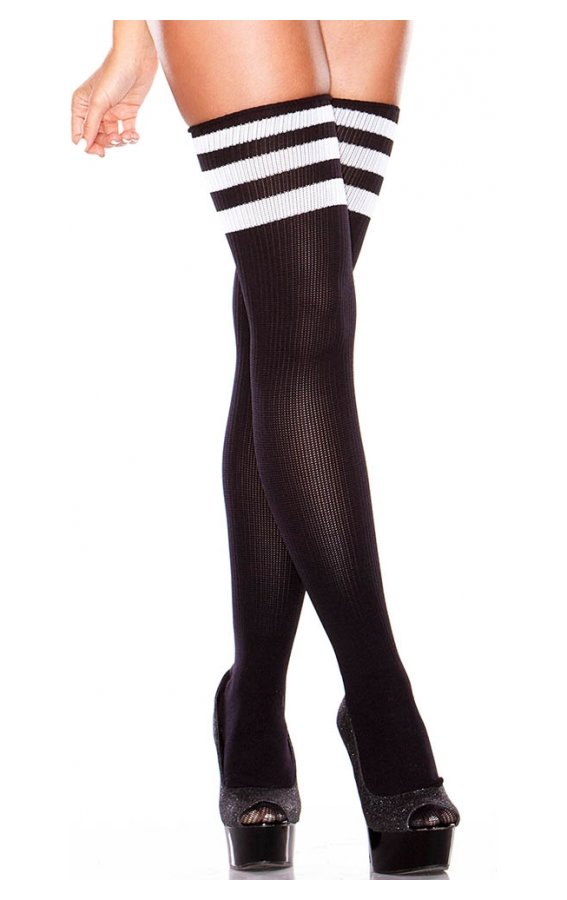 Теплые эластичные чулки черного цвета на плотной резинке,отлично сидят на ножке.Чулки с принтом в белую полоску на резинке.