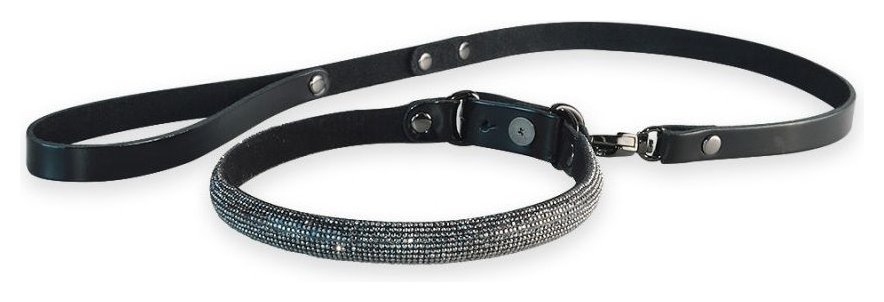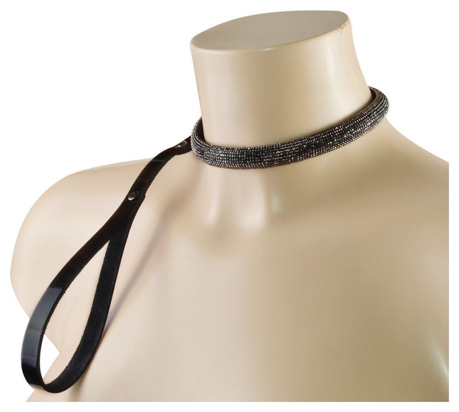Эффектный сверкающий ошейник имеет велюровую внутреннюю сторону. Регулируется при помощи кобурной кнопки. В комплекте идет поводок из натуральной лаковой кожи. Данный девайс можно использовать как чокер, для дополнения своего образа, так и для сексуальных игр. Обернув ошейник дважды вокруг запястья, Вы получите роскошный браслет. Обхват ошейника - 36-37 см. Ширина - 1,1 см. Длина поводка - 55 см.