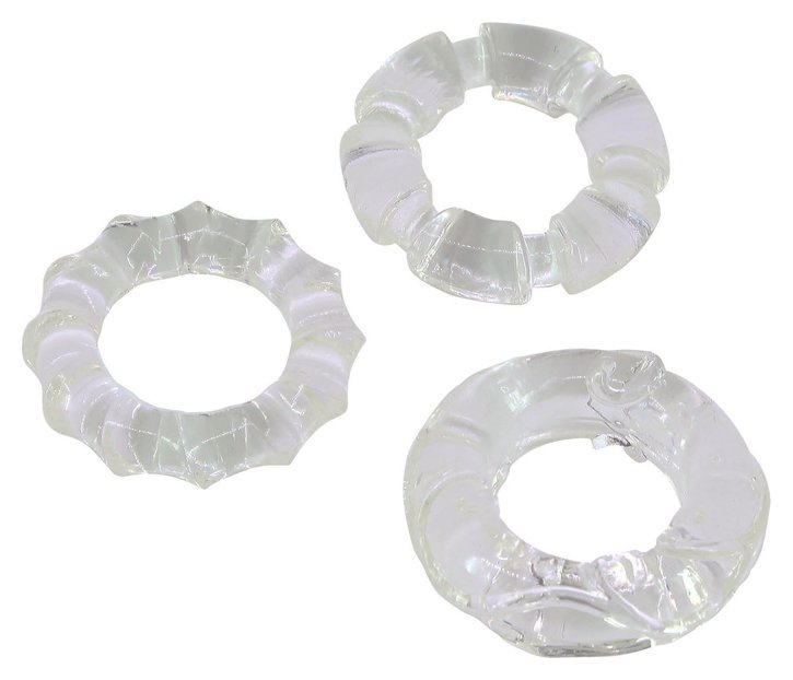 Набор из трех эрекционных колец одинакового диаметра. Предназначены для продления эрекции у мужчин. Благодаря современному эластичному материалу из которого выполнены кольца, они подходят для всех размеров полового члена.