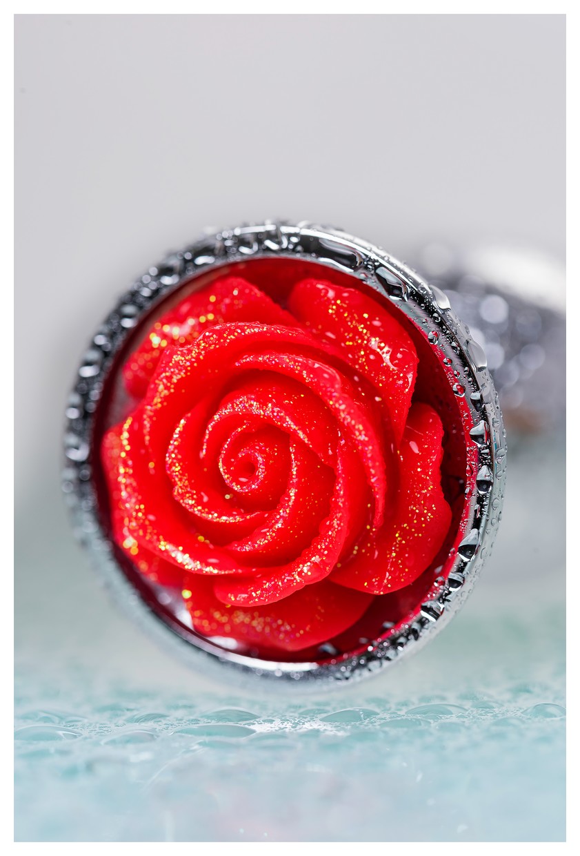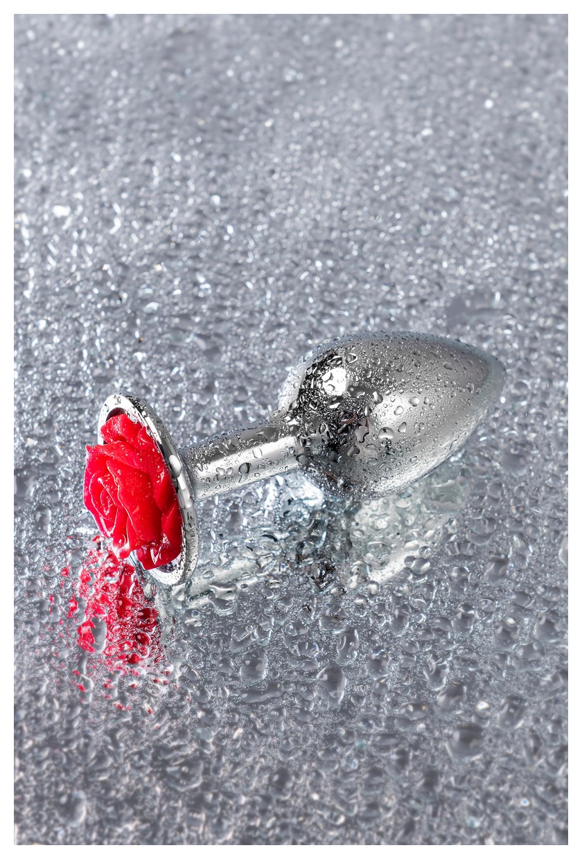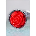 Серебристая анальная втулка с красной розочкой - 8 см