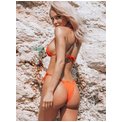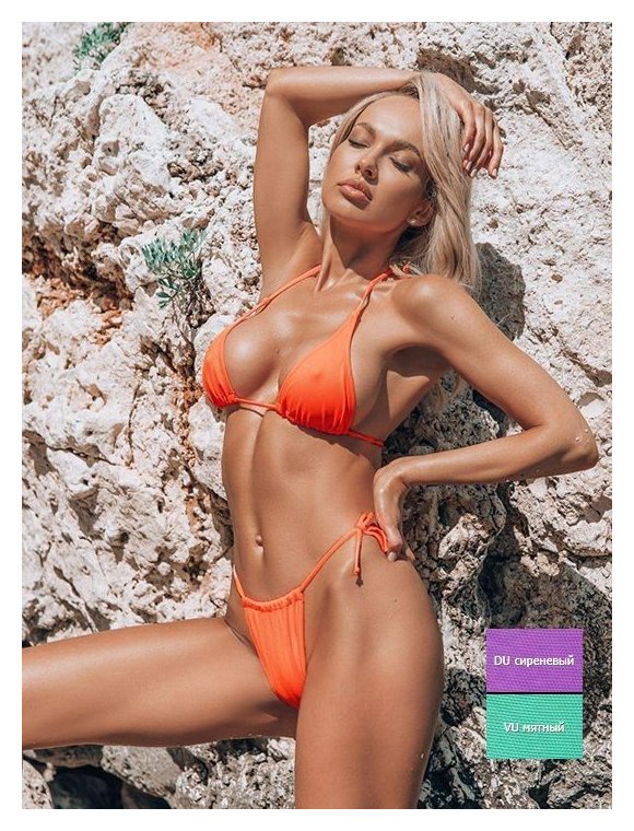 Купальник бикини: бюстгальтер-триангул и трусики-бразилиана на завязках. Бретель через шею. В комплекте: лиф, плавки.