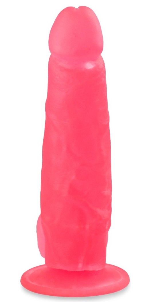 Розовый фаллоимитатор с удлинённой мошонкой - 16,5 см
