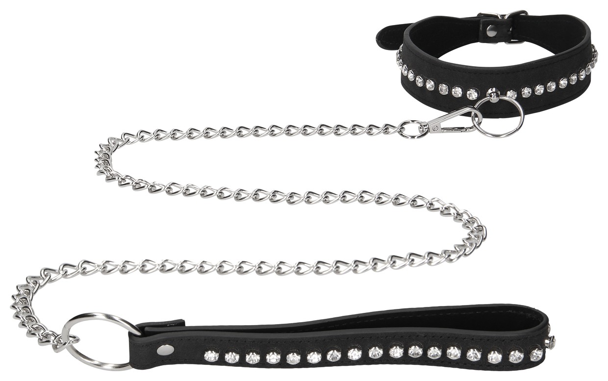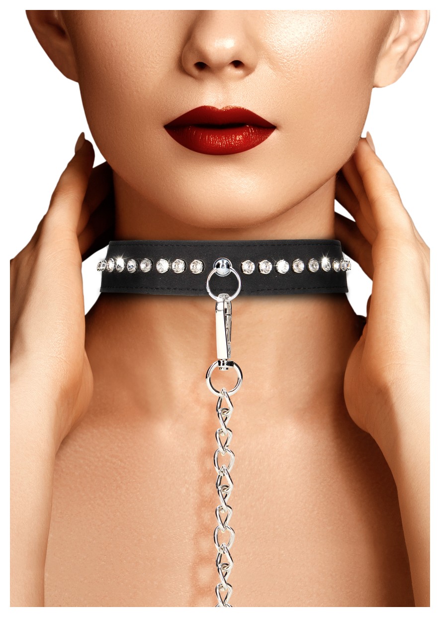Черный ошейник с поводком Diamond Studded Collar With Leash