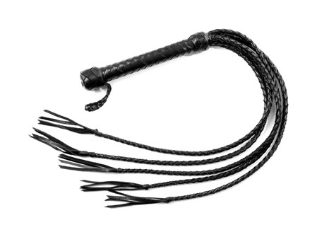 Плеть имеет оплетенную кожей рукоятку, из которой выходят пять плетеных кожаных хвостов. Длина хвостов - 50 см.