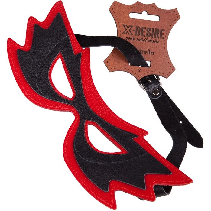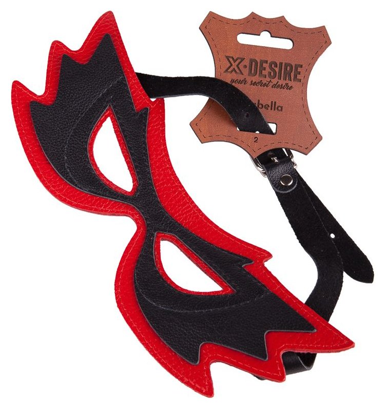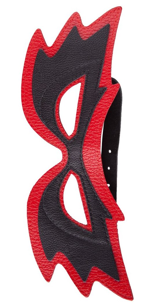 Маска «бабочка» изготовлена из натуральной кожи красного и черного цветов. Фурнитура «никель».
