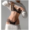 Кружевной эротический комплект: Бюстгальтер с мягкими чашками на каркасах и трусы. В комплекте: бюстгальтер, трусики.