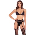 Эротический комплект 3 Piece Sheer Striped Bra Thong Garter Belt Set