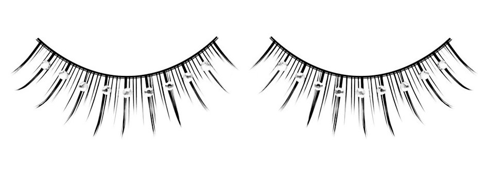 Длинные черные ресницы с серебряными стразами
