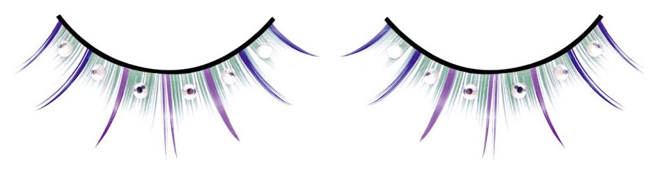 Легкомысленные ресницы ручной работы, выполненные в синем, лиловом и зеленом цветах, с белыми кристаллами. Идеальны для выхода, привлечения внимания и флирта. В комплект входит клей для легкого и комфортного прикрепления ресниц.
