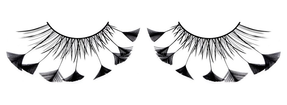 Черные ресницы с перьями по краю