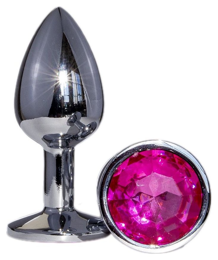 Металлическая анальная втулка с ярко-розовым кристаллом - 7,2 см. FFF