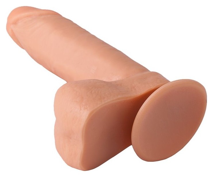 Гелевый фаллоимитатор с мошонкой на присоске - 19 см